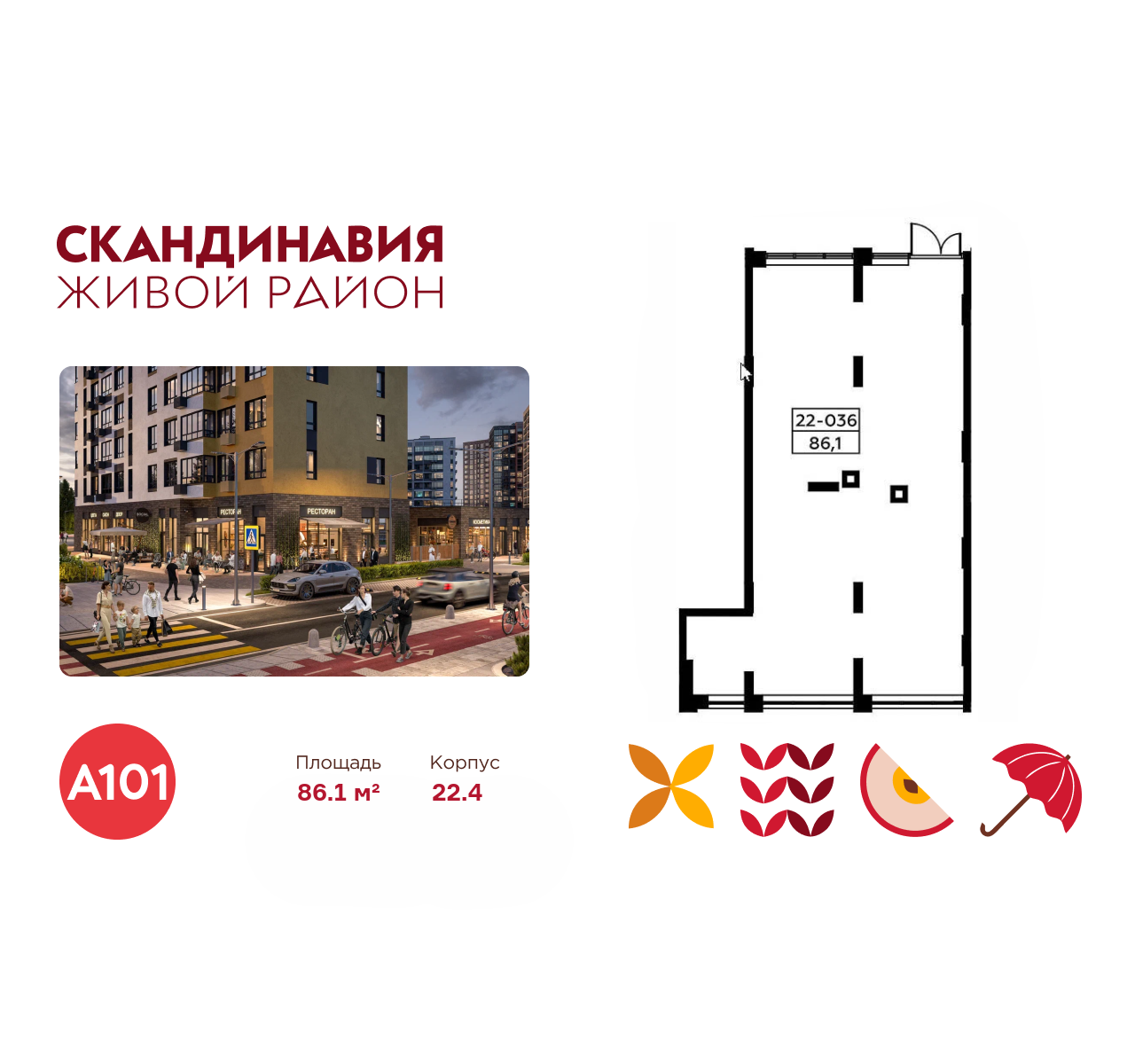 Снять торговое помещение 86 м² в ЖК Скандинавия