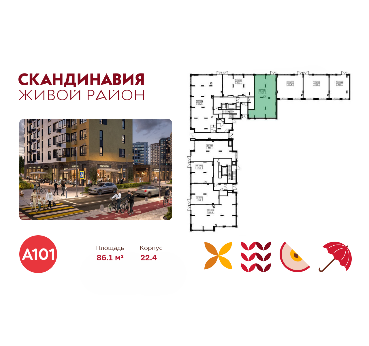 Узнаваемый и атмосферный жилой район с активным населением и развитой коммерческой инфраструктурой реализуется в соответствии с концепцией «15-минутный город». Здесь уже работают школы и детские сады, новые образовательные центры (школа и детский сад),