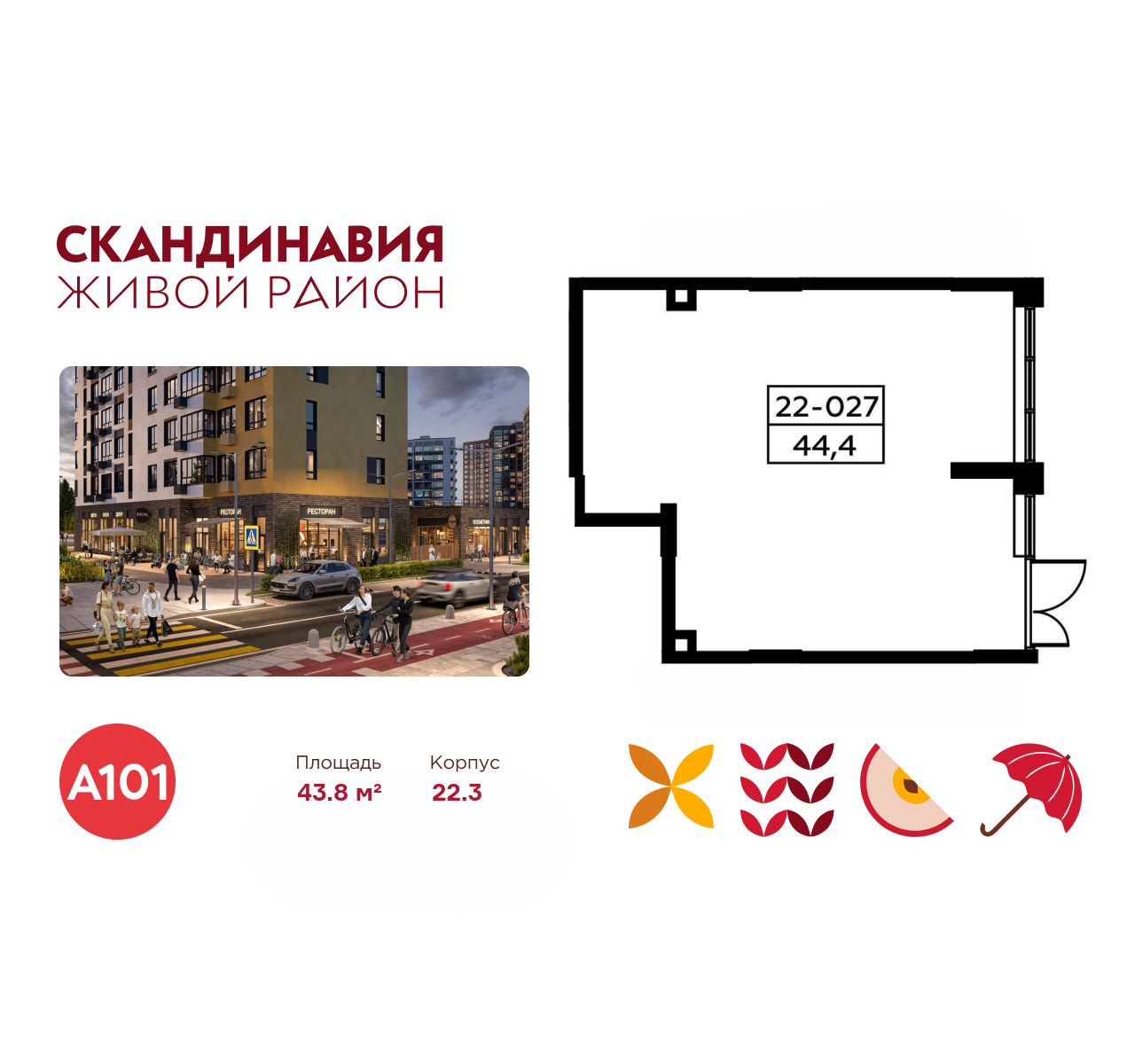 Всё это обеспечивает высокий пешеходный трафик и востребованность коммерческих объектов. Любой объект инфраструктуры «Скандинавии» находится в шаговой доступности. Многие жители не покидают локацию в течение дня, пользуясь услугами и делая покупки.