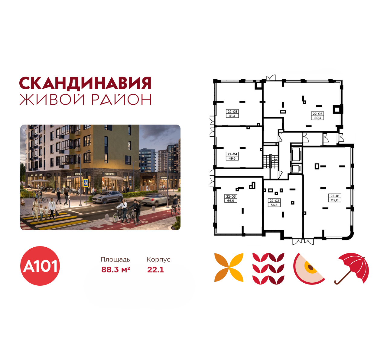 Всё это обеспечивает высокий пешеходный трафик и востребованность коммерческих объектов. Любой объект инфраструктуры «Скандинавии» находится в шаговой доступности. Многие жители не покидают локацию в течение дня, пользуясь услугами и делая покупки.