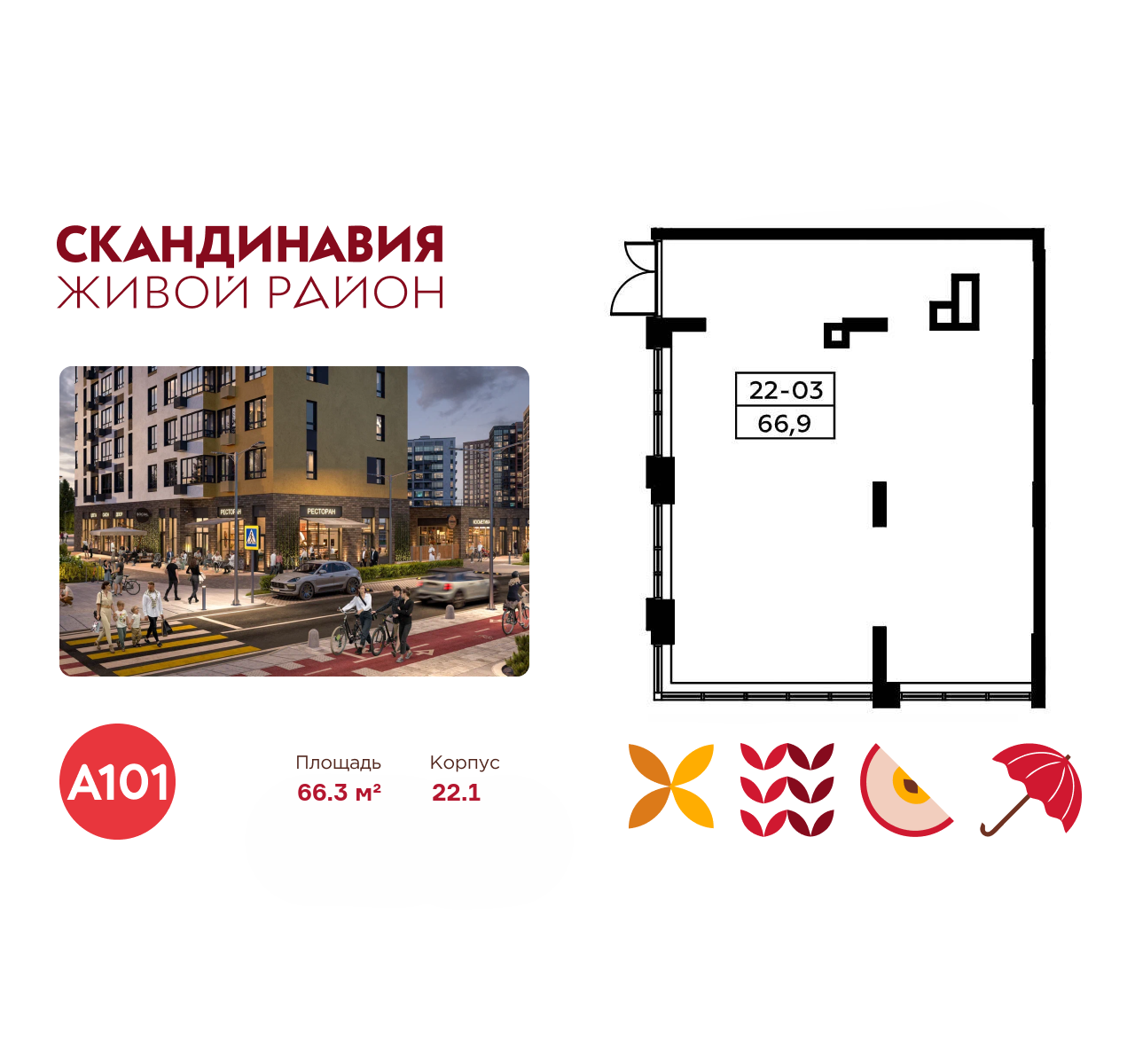 Сдается помещение площадью 66.30. на 1-м этаже ЖК «Скандинавия». Трафик 874 человек в день.