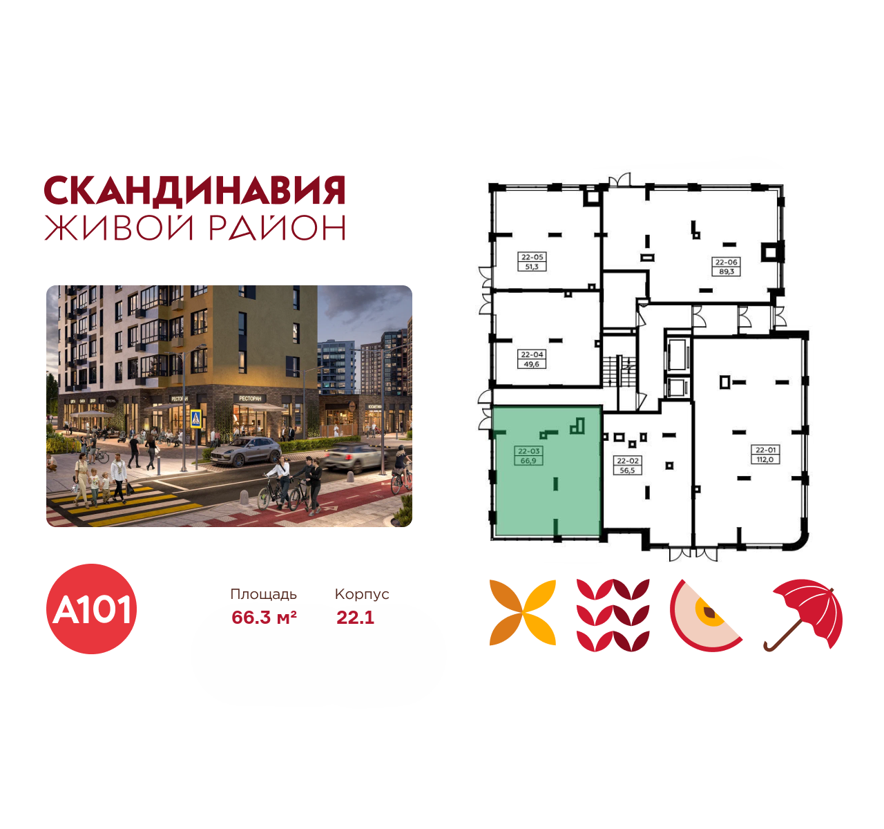 Всё это обеспечивает высокий пешеходный трафик и востребованность коммерческих объектов. Любой объект инфраструктуры «Скандинавии» находится в шаговой доступности. Многие жители не покидают локацию в течение дня, пользуясь услугами и делая покупки.