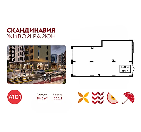 Сдается помещение площадью 94.50. на 1-м этаже ЖК «Скандинавия». Трафик 874 человек в день.