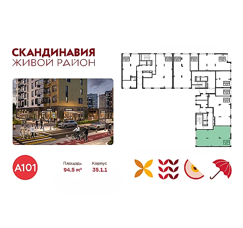 Всё это обеспечивает высокий пешеходный трафик и востребованность коммерческих объектов. Любой объект инфраструктуры «Скандинавии» находится в шаговой доступности. Многие жители не покидают локацию в течение дня, пользуясь услугами и делая покупки.