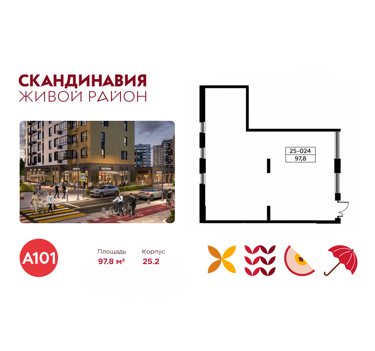 Сдается помещение площадью 97.80. на 1-м этаже ЖК «Скандинавия». Трафик 874 человек в день.