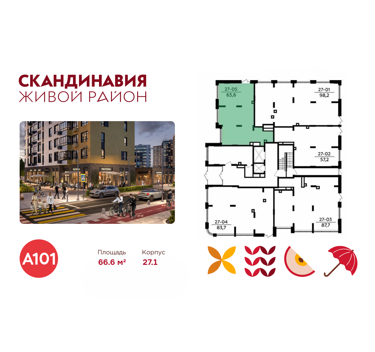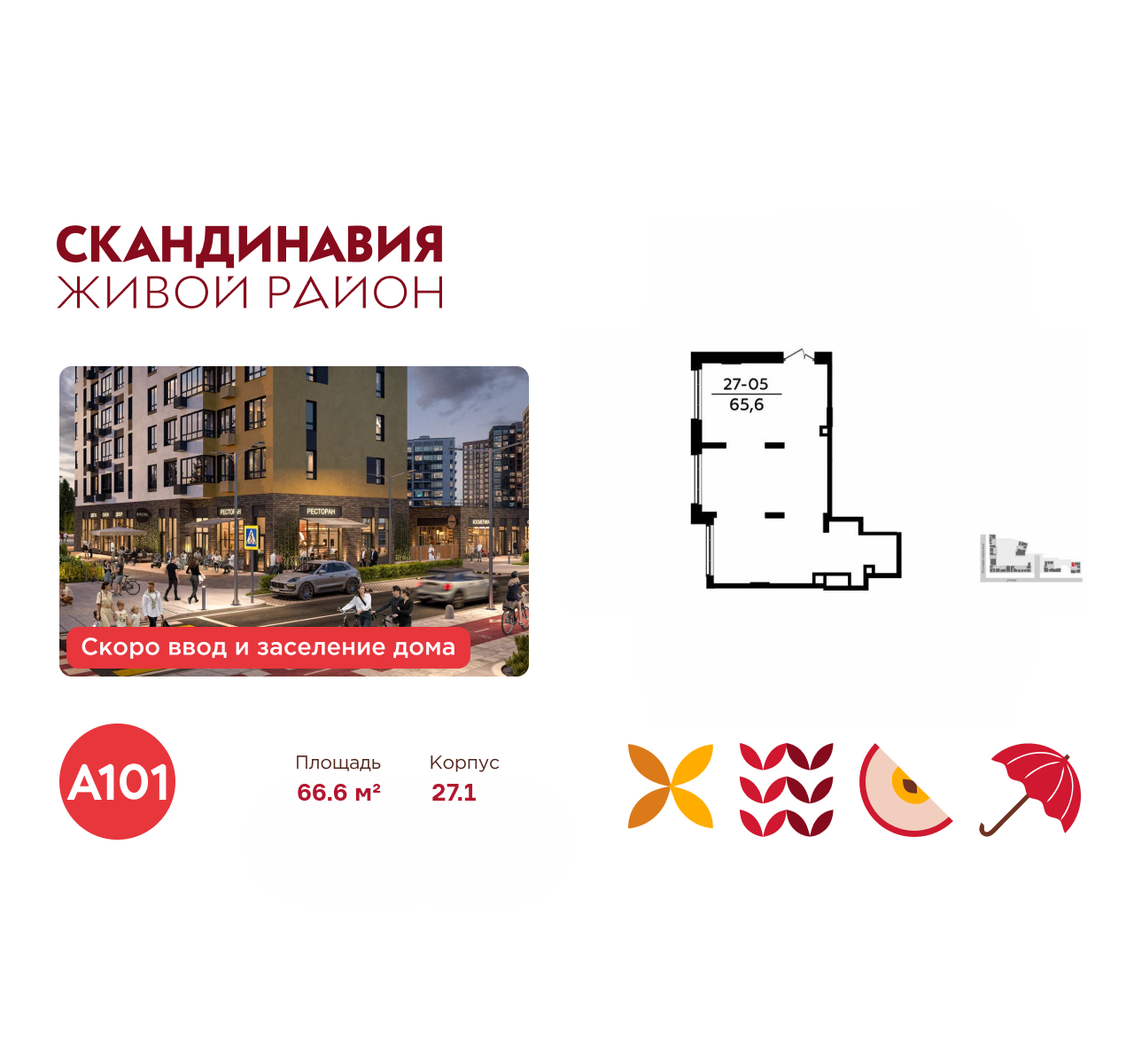 Всё это обеспечивает высокий пешеходный трафик и востребованность коммерческих объектов. Любой объект инфраструктуры «Скандинавии» находится в шаговой доступности. Многие жители не покидают локацию в течение дня, пользуясь услугами и делая покупки.