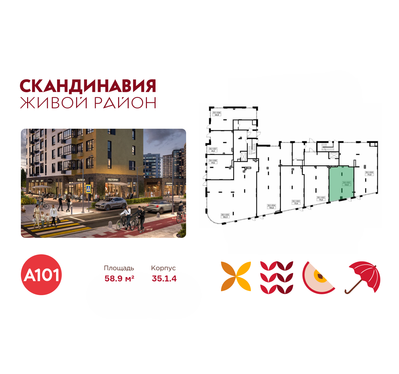 Всё это обеспечивает высокий пешеходный трафик и востребованность коммерческих объектов. Любой объект инфраструктуры «Скандинавии» находится в шаговой доступности. Многие жители не покидают локацию в течение дня, пользуясь услугами и делая покупки.