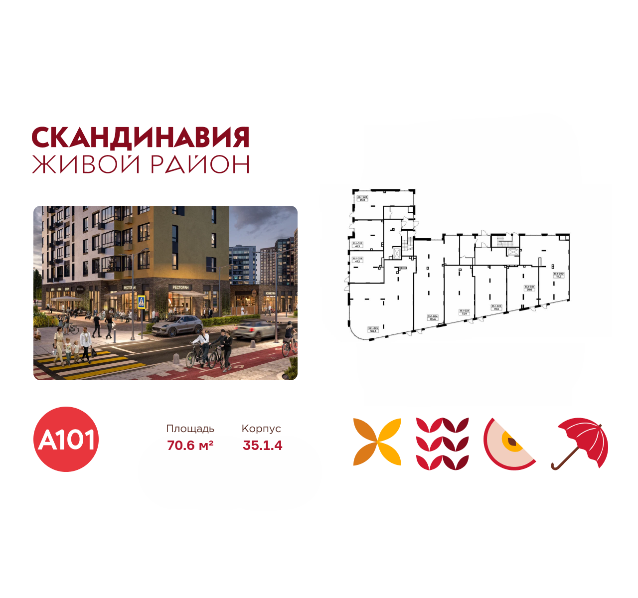 Всё это обеспечивает высокий пешеходный трафик и востребованность коммерческих объектов. Любой объект инфраструктуры «Скандинавии» находится в шаговой доступности. Многие жители не покидают локацию в течение дня, пользуясь услугами и делая покупки.