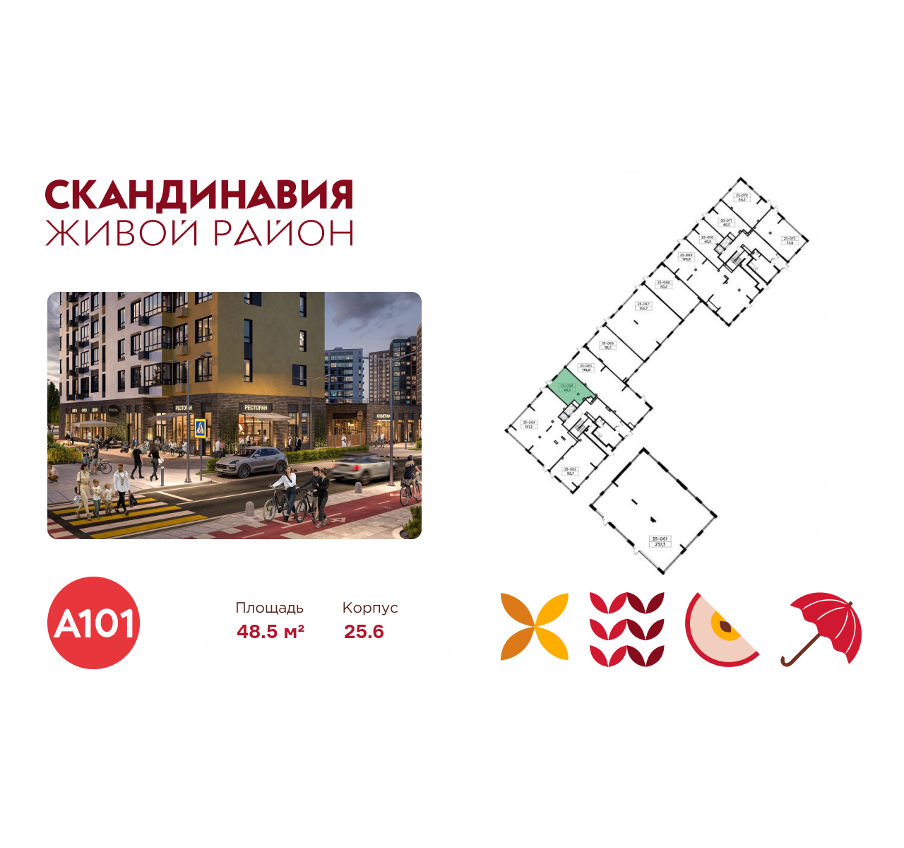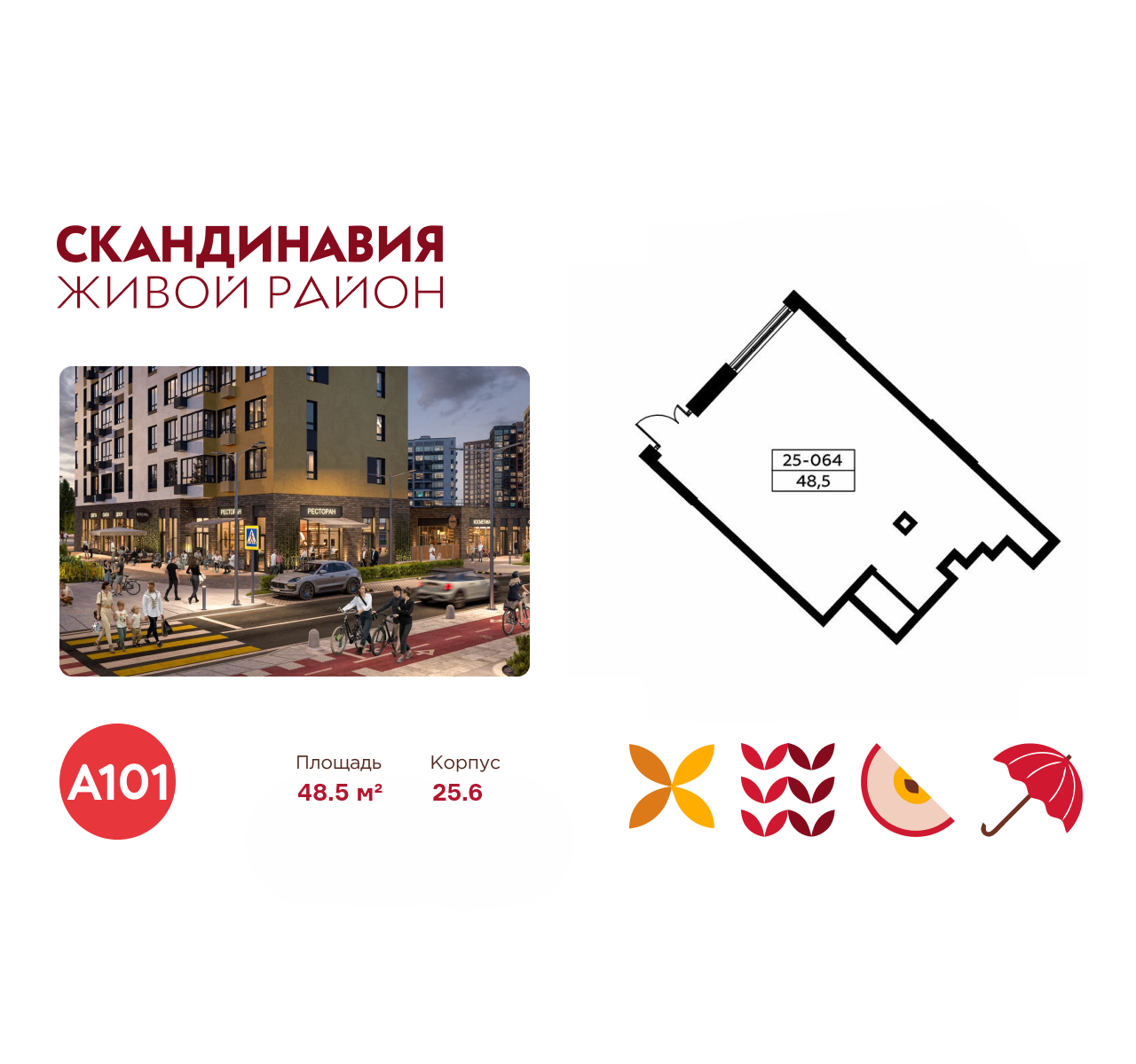 Всё это обеспечивает высокий пешеходный трафик и востребованность коммерческих объектов. Любой объект инфраструктуры «Скандинавии» находится в шаговой доступности. Многие жители не покидают локацию в течение дня, пользуясь услугами и делая покупки.