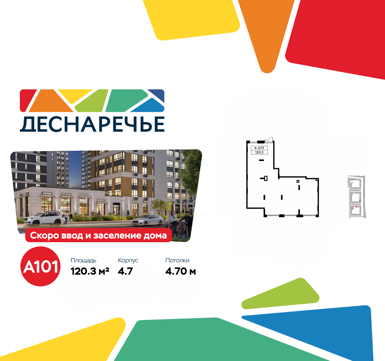 Продается торговое помещение площадью 120.30. на 1-м этаже ЖК «Деснаречье».