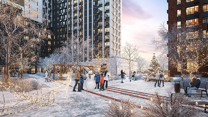 В жилом районе появятся школы и детские сады, фудхолл и гастроплощадь, спорткомплекс с ледовой ареной и бассейном, этнографический музей, ивент-центр, общественный центр с кинотеатром и др. Рекреационные объекты также станут точками притяжения активного трафика.