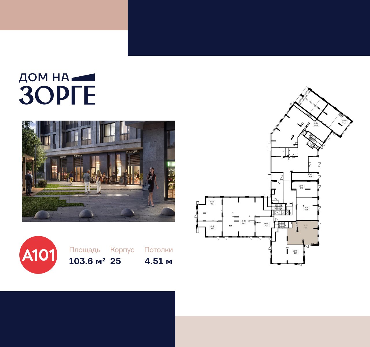 Всего в «Доме на Зорге» предусмотрено 11 помещений (от 30,9 до 230,2 м2), включая лоты под минимаркет, общепит, студию йоги или школу танцев.