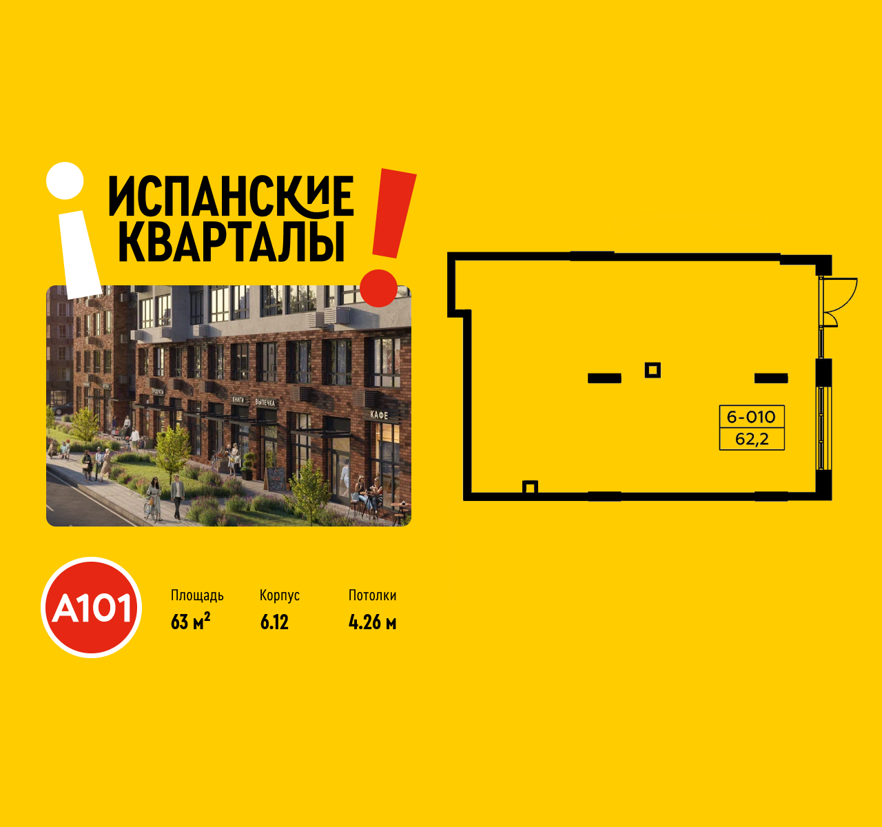 Снять торговое помещение 63 м² в ЖК Испанские кварталы