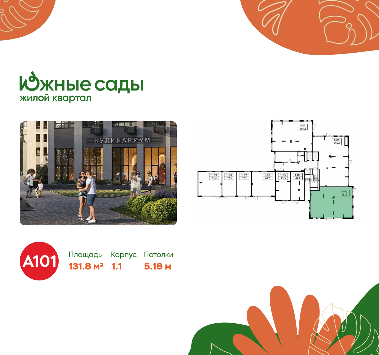 Снять торговое помещение 131 м² в ЖК Южные сады