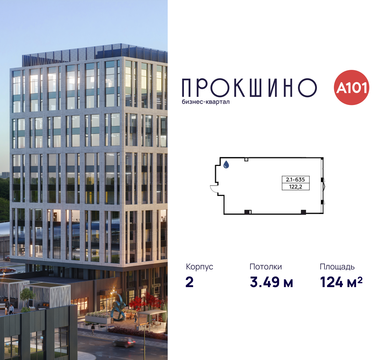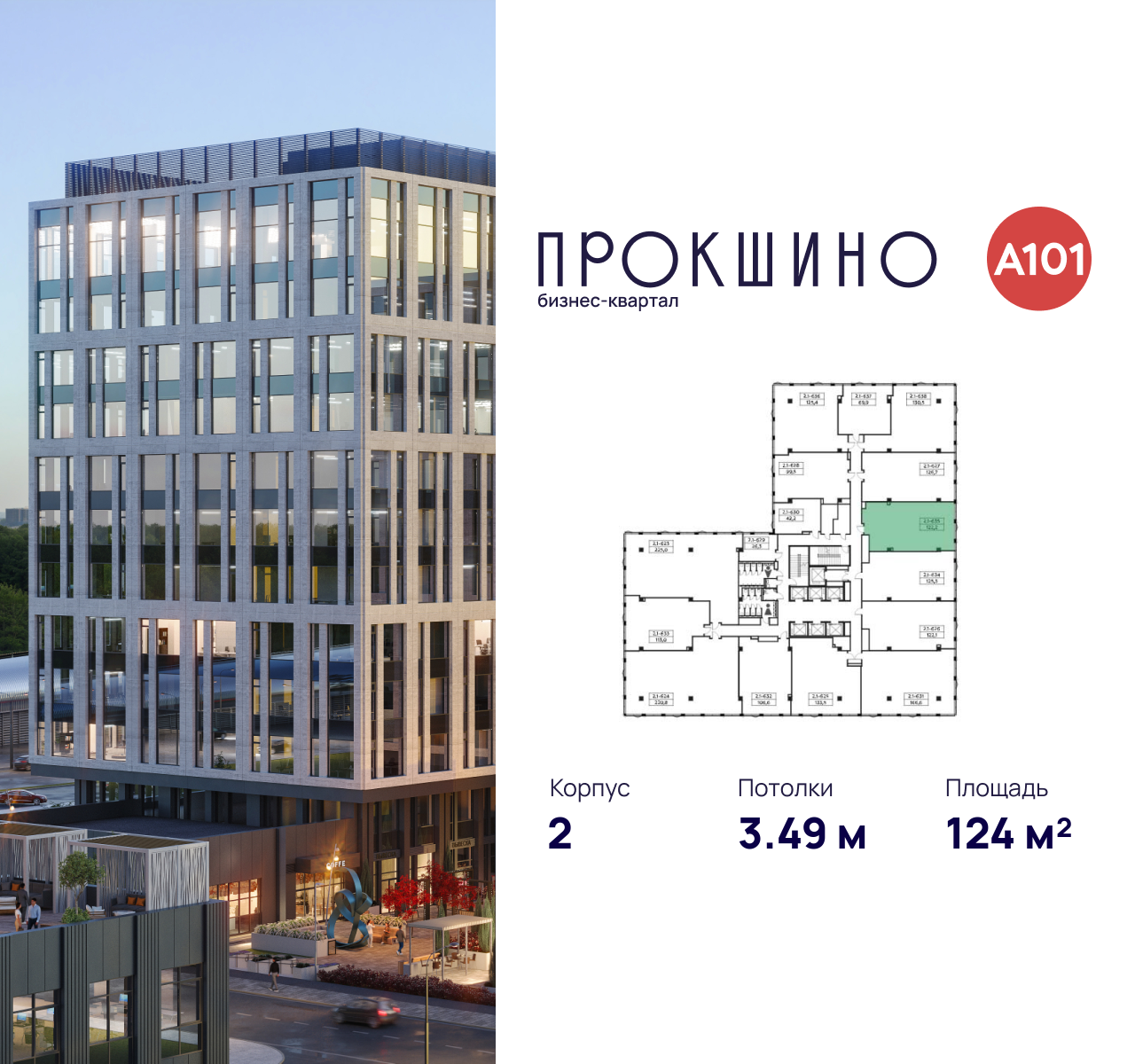 Купить офис 124 м² в бизнес-квартале Прокшино