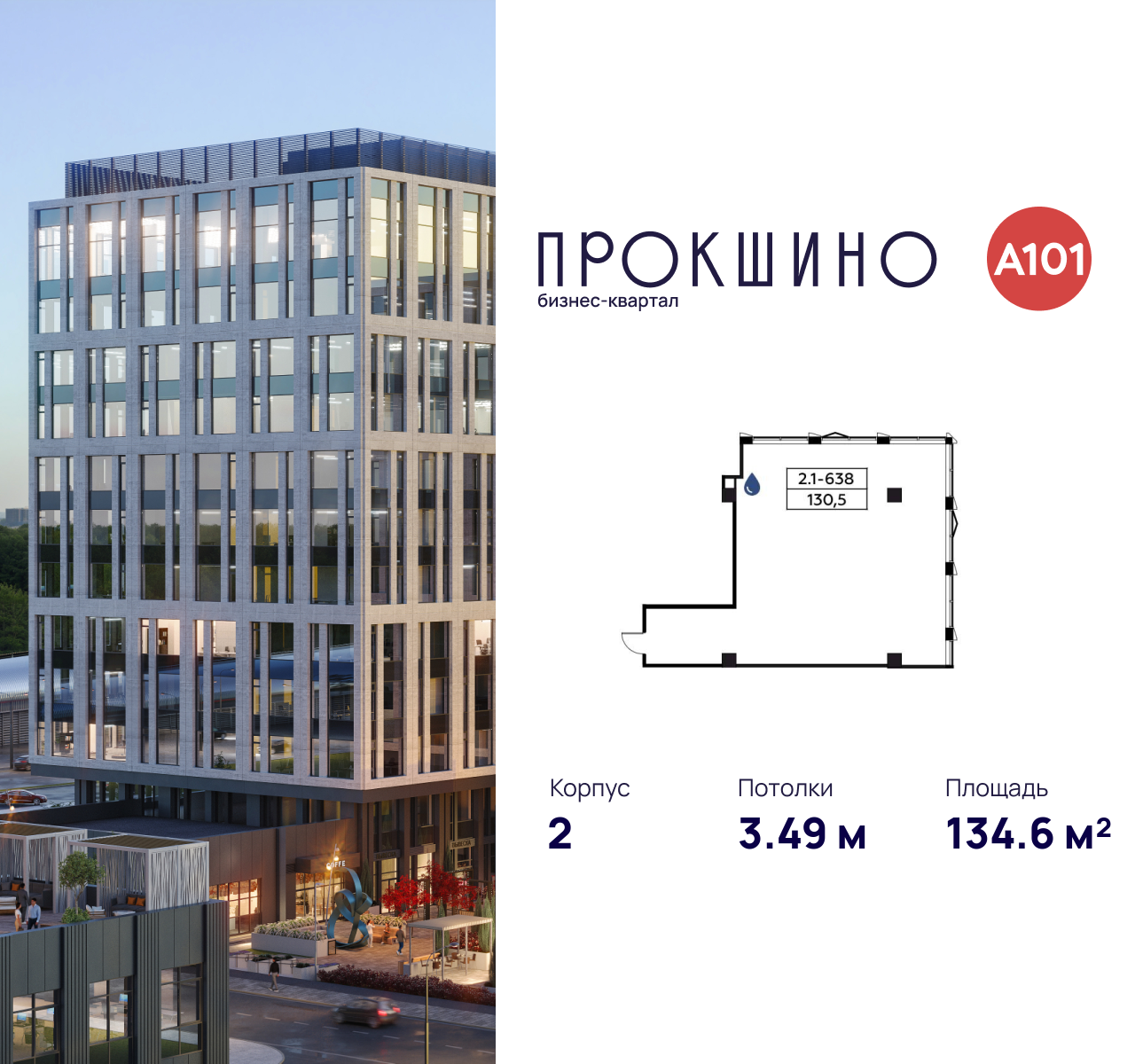 Купить офис 134 м² в бизнес-квартале Прокшино