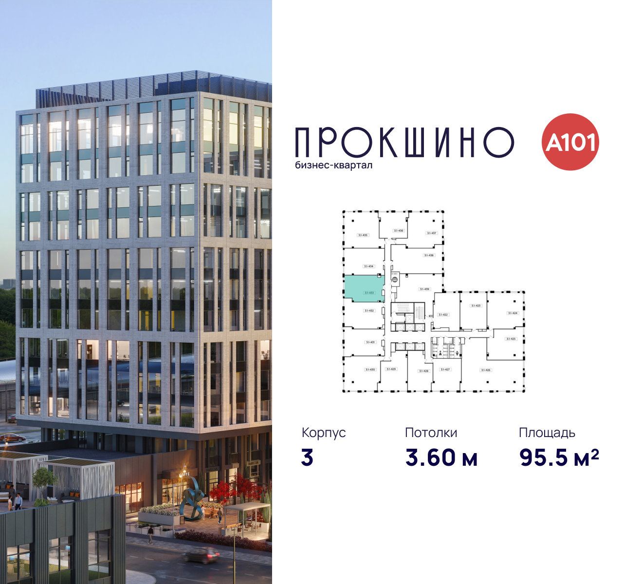 Купить офис 95 м² в бизнес-квартале Прокшино