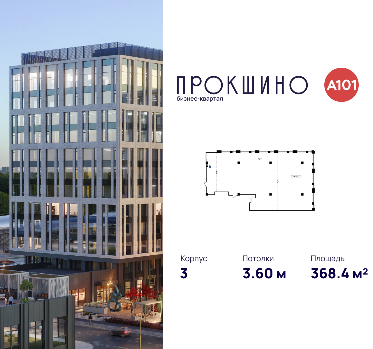 Купить офис 368 м² в бизнес-квартале Прокшино