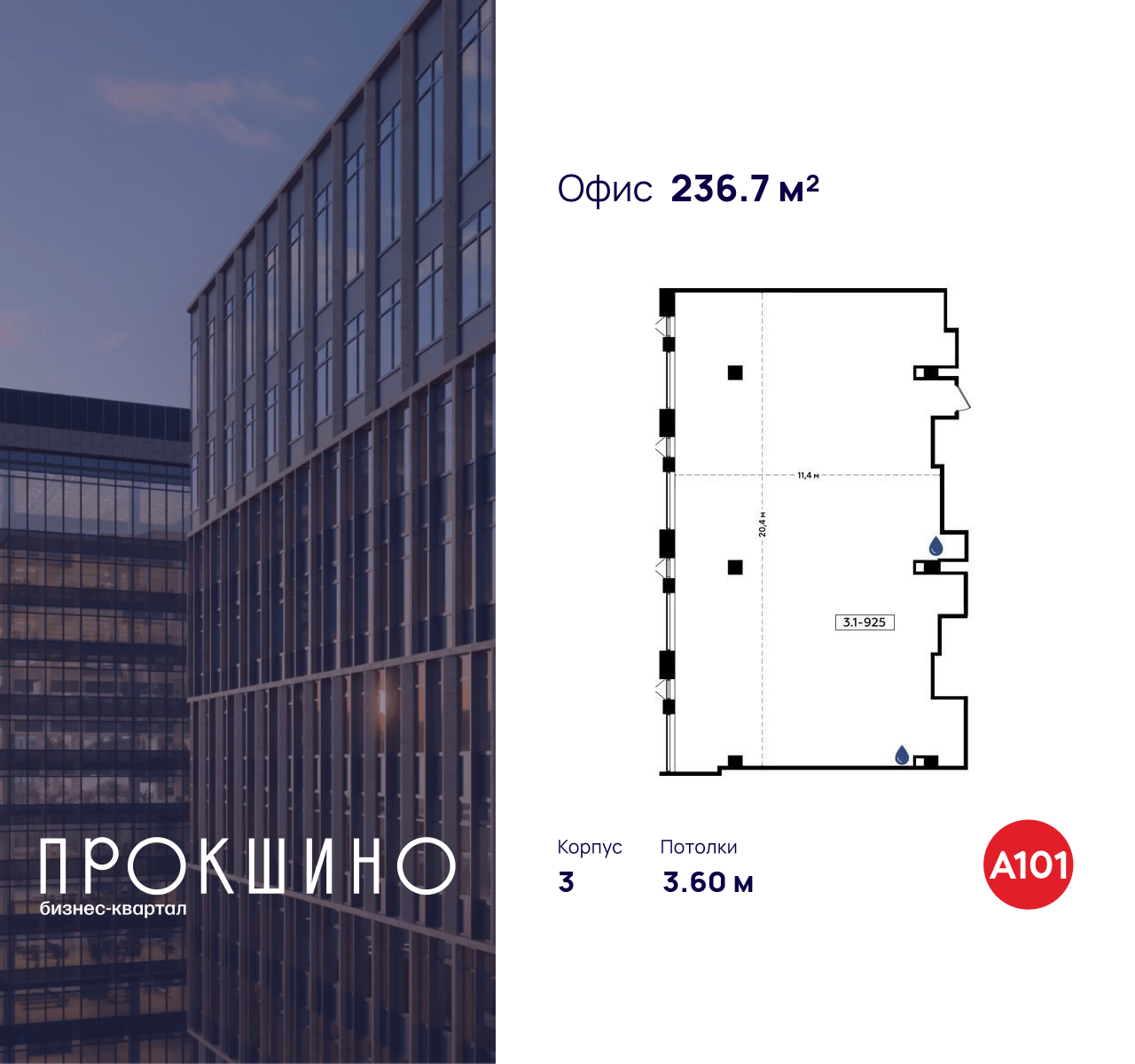 Продаётся офисное помещение площадью 236.7 кв. м. в Бизнес-квартал «Прокшино». Без отделки. Окна с видом на улицу. Высота потолков 3.6 м. Выделенная электрическая мощность — 19 кВт. Общий вход с улицы. Стоимость помещения — 53 207 793 руб. Способы оплаты и более подробная информация по телефону.
