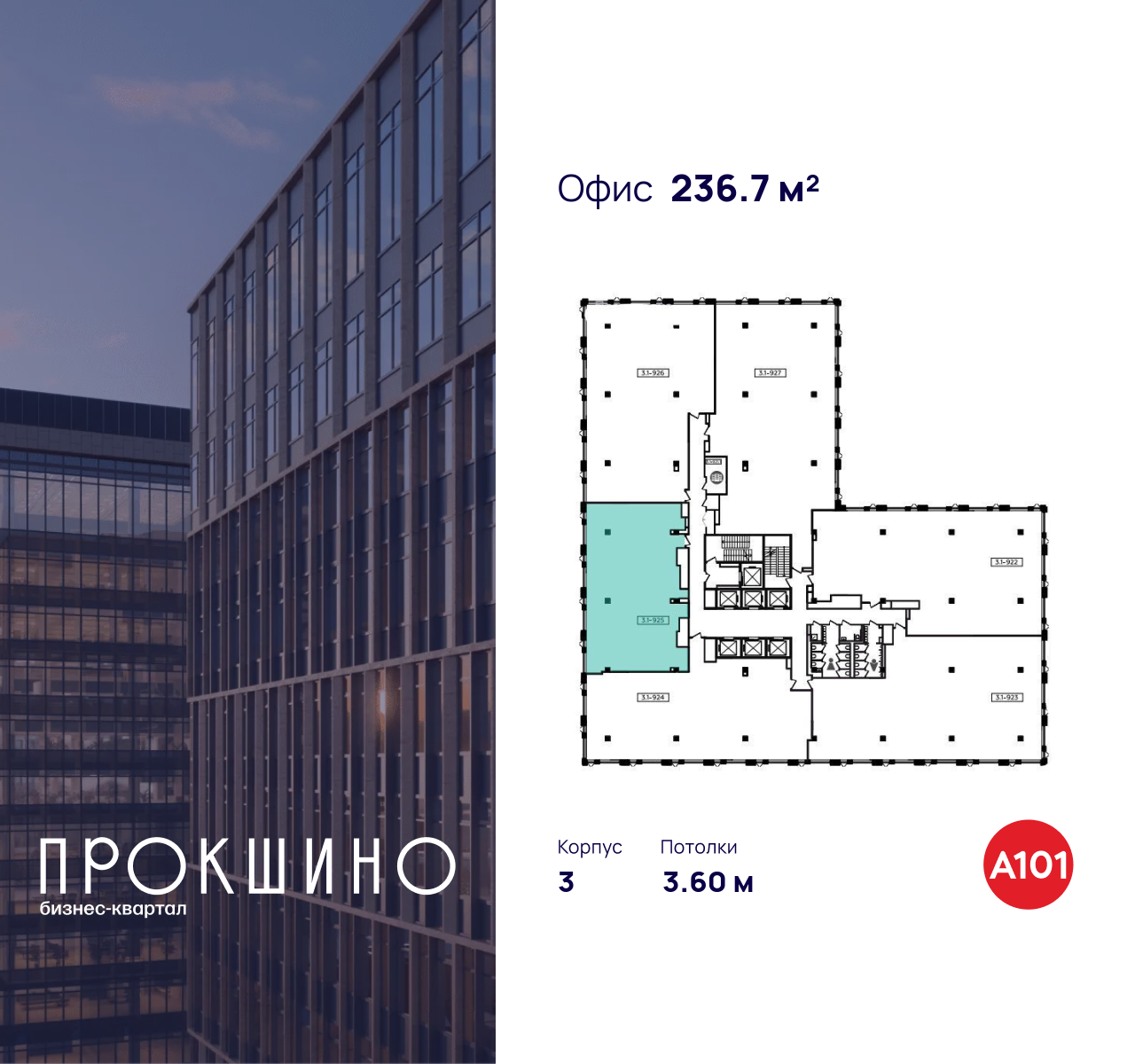 Купить офис 236 м² в бизнес-квартале Прокшино