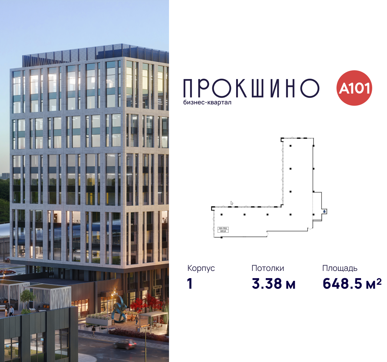 Бизнес-квартал «Прокшино» - это многофункциональный деловой квартал площадью более 177 тыс. м2. В его составе 5 офисных зданий класса «А» высотой до 13 этажей, 2-этажный торговый центр, панорамный ресторан с открытой террасой, современный фитнес-центр. На первых этажах дизайнерские лобби с зонами ресепшен, лаунж-зонами, а также кафе, магазины и сервисные службы.