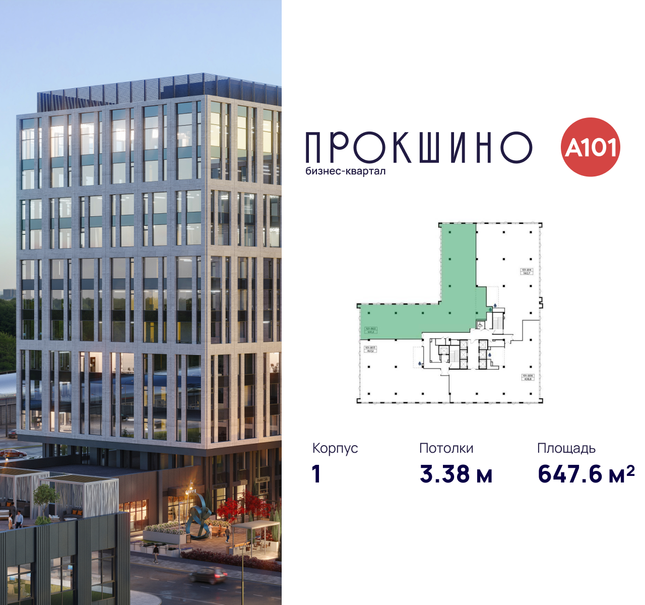 Бизнес-квартал «Прокшино» - это многофункциональный деловой квартал площадью более 177 тыс. м2. В его составе 5 офисных зданий класса «А» высотой до 13 этажей, 2-этажный торговый центр, панорамный ресторан с открытой террасой, современный фитнес-центр. На первых этажах дизайнерские лобби с зонами ресепшен, лаунж-зонами, а также кафе, магазины и сервисные службы.