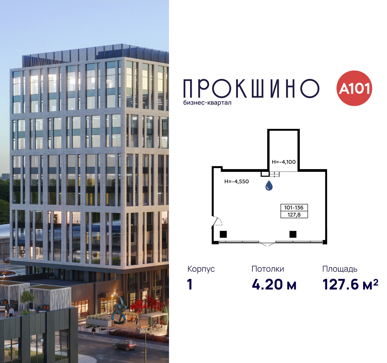 Торговое помещение 127 м² в бизнес-квартале Прокшино