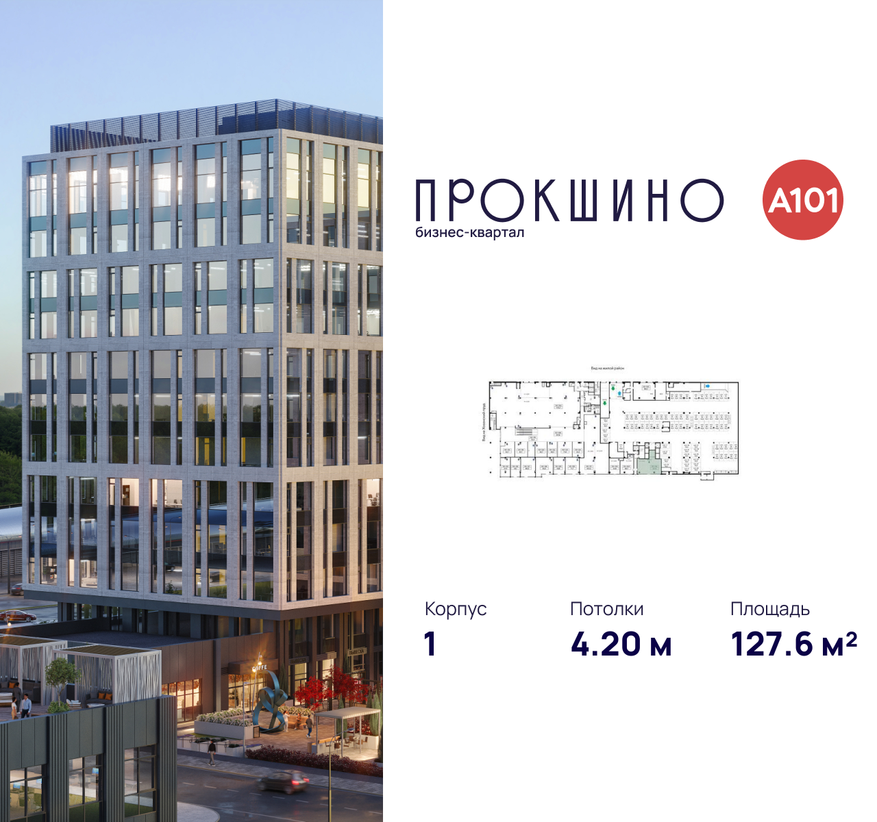 Бизнес-квартал «Прокшино» - это многофункциональный деловой квартал площадью более 177 тыс. м2. В его составе 5 офисных зданий класса «А» высотой до 13 этажей, 2-этажный торговый центр, панорамный ресторан с открытой террасой, современный фитнес-центр. На первых этажах дизайнерские лобби с зонами ресепшен, лаунж-зонами, а также кафе, магазины и сервисные службы.