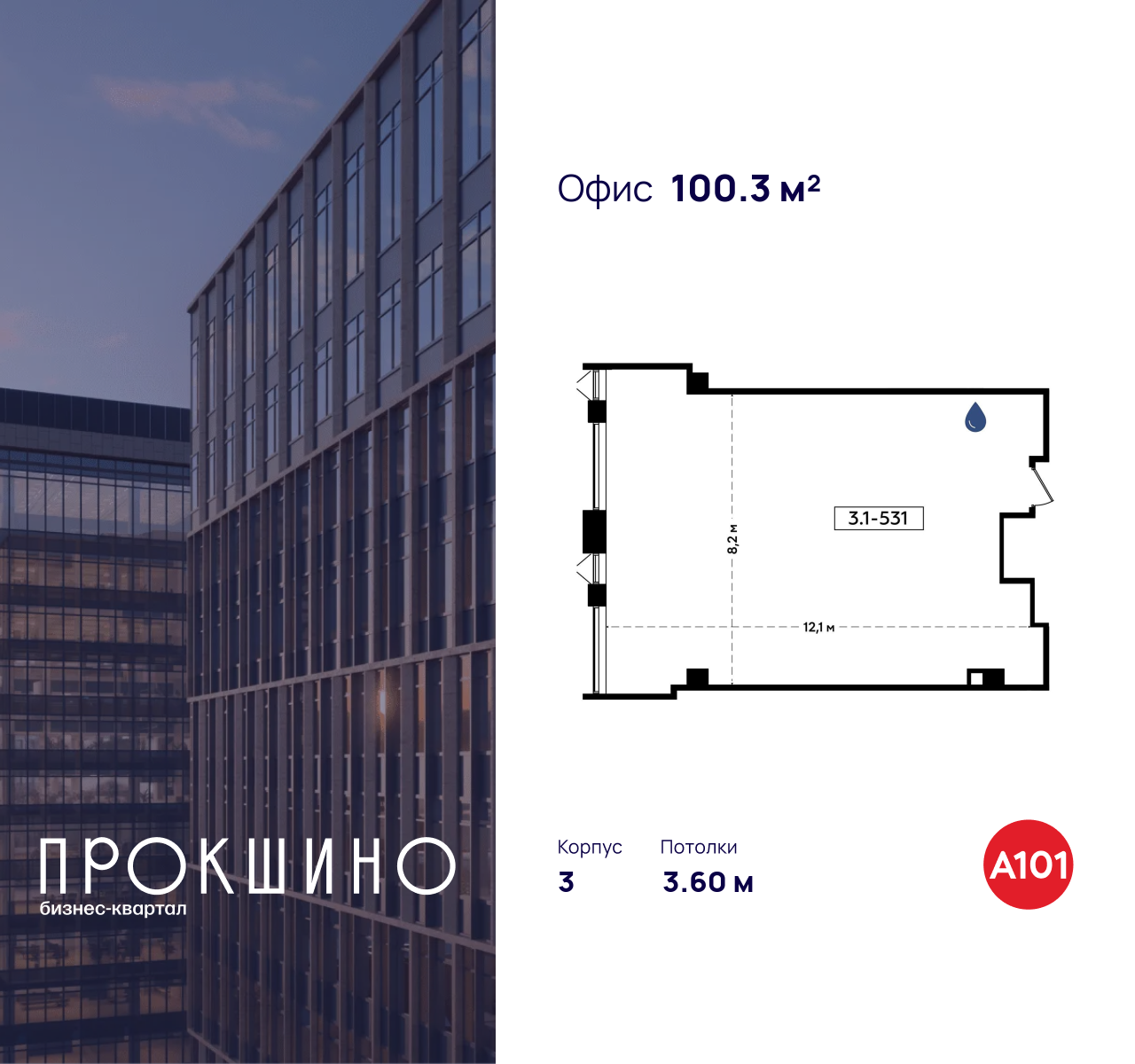Продаётся офисное помещение площадью 100.3 кв. м. в Бизнес-квартал «Прокшино». Без отделки. Окна с видом на улицу. Высота потолков 3.6 м. Выделенная электрическая мощность — 8 кВт. Общий вход с улицы. Стоимость помещения — 26 240 486 руб. Способы оплаты и более подробная информация по телефону.