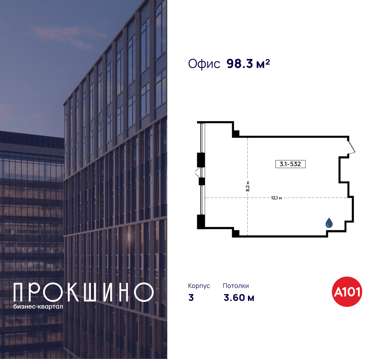 Купить офис 98 м² в бизнес-квартале Прокшино