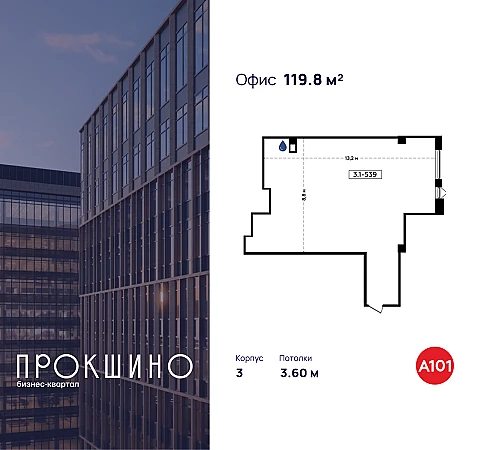 Купить офис 119 м² в бизнес-квартале Прокшино