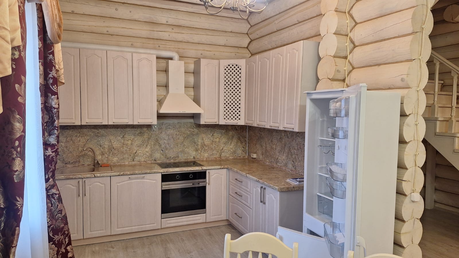 ==ЛОТ 223528 ==Прекрасный загородный дом в охраняемом поселке "Заря", расположенном в живописной деревне Большаково на территории Московской области. Коммунальные платежи включены в стоимость. Изысканный дом выполнен из северного леса. На территории поселка площадью 5 гектар имеется зона отдыха с баней, домиком-барбекю, прогулочными зонами и детской площадкой, все это только для проживающих . В доме имеется все необходимое для комфортного проживания - просторная кухня с бытовой техникой, уютная гостиная с мягкой мебелью, несколько уютных спален, санузлы с душевой кабиной и ванной. Индивидуальная система водоочистки. Поселок "Заря" предлагает высокий уровень безопасности - круглосуточная охрана, сигнализация в каждом доме, видео-наблюдение. Рядом с поселком есть частная школа "Светлые горы" , а также продуктовый магазин, теннисный корт. Недалеко торговые центры "Отрада", "ОБИ", "ОКЕЙ". Удобная транспортная доступность - всего 10 минут на автомобиле до станции метро Пятницкое шоссе, ходит общественный транспорт. Этот загородный дом идеально подойдет для постоянного проживания с семьей. 1 этаж: прихожая с гардеробом и большим зеркалом; просторная кухня (с плитой, духовкой, вытяжкой, посудомоечной машиной); гостиная (с мягкой мебелью из натуральной кожи и жк-телевизором); гостевая спальня (с мебелью и жк-телевизором); санузел с душевой кабиной; бойлерная с индивидуальной системой водоочистки. 2 этаж: хозяйская спальня с большой кроватью и мебелью; спальня с кабинетом и большим балконом; просторный санузел с ванной.
