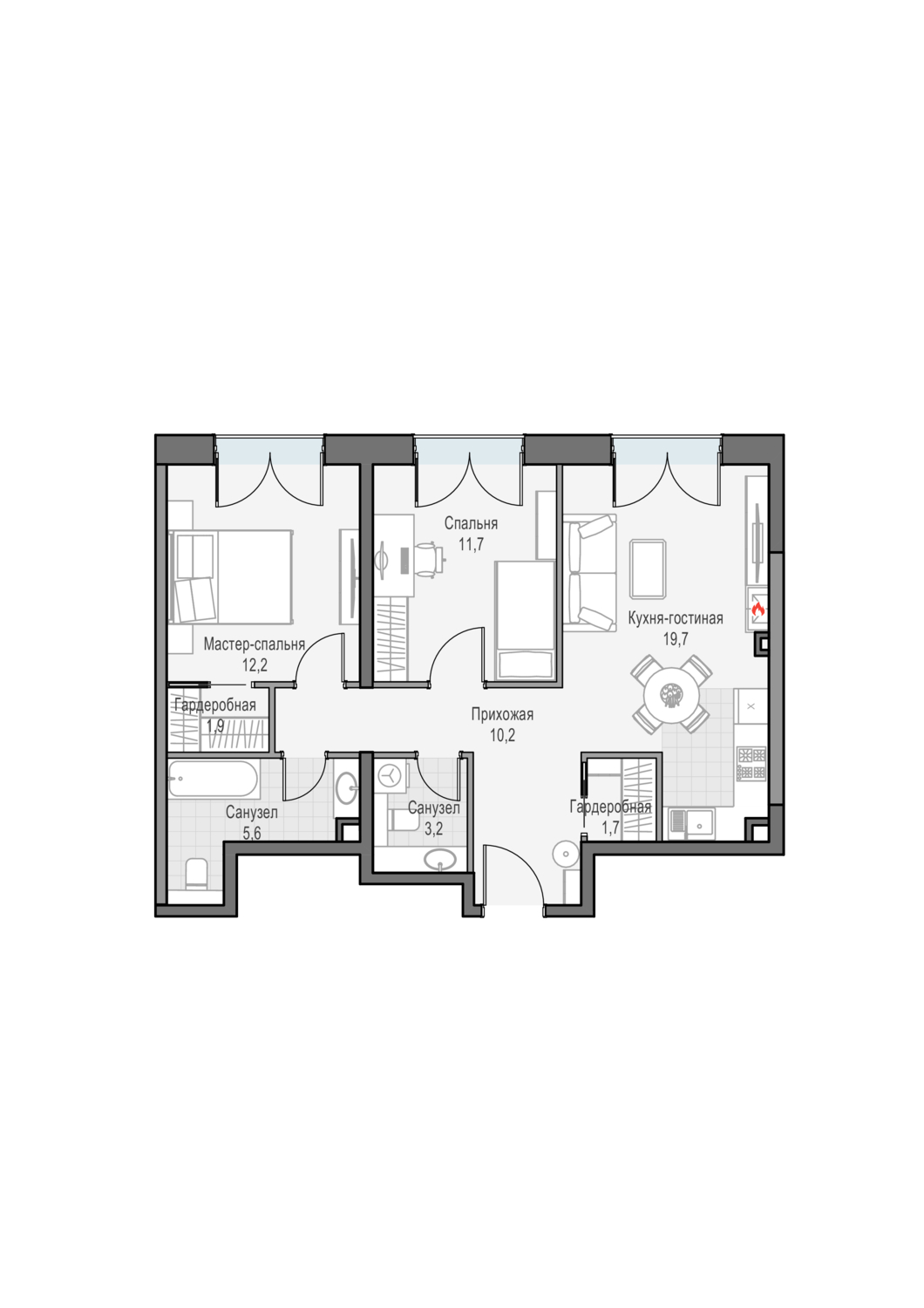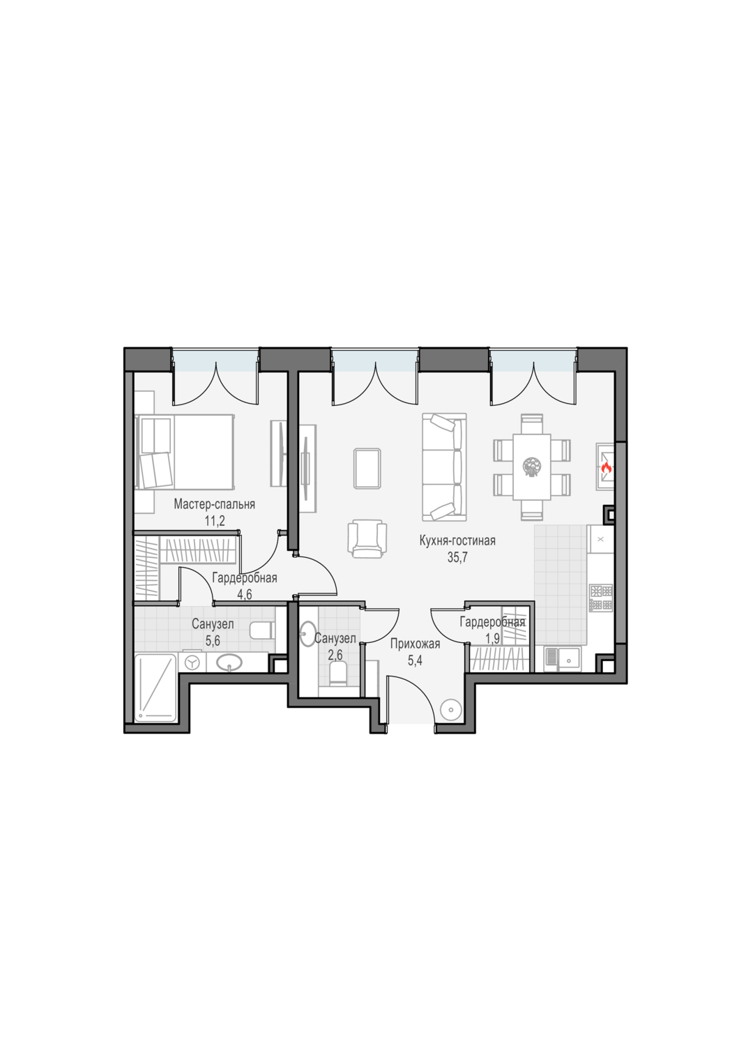 Общая площадь квартиры – 79,6 м2. Высота потолков 3,1 м. создают дополнительный простор, панорамные окна Schuco 2,7 м с предусмотренной функцией проветривания, наполнят вашу квартиру светом и свежим воздухом. Функциональная, продуманная планировка вмещаем большую кухню-гостиную, отдельную комнату, современную мастер-спальню с собственной ванной комнатой и гардеробной, общую ванную комнату и вместительный коридор с местом под встроенный шкаф. Окна квартиры выходят в сторону ландшафтного заказника «Долина реки Раменки» и МГУ, что позволит Вам наслаждаться прекрасными панорамными видами на город и наблюдать за красивыми рассветами. На каждом этаже есть технические балконы для установки системы кондиционирования VRV. На этаже расположены кладовые помещения.