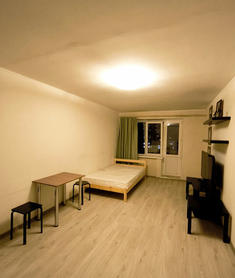 Комната полностью оборудована всем необходимым для комфортного проживания. Спальное место, места хранения и техника. Балкон не остеклён.