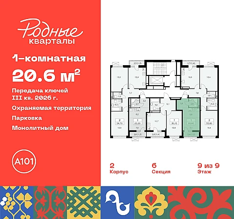 Купить 1к квартиру 20 м² в ЖК "Родные кварталы"