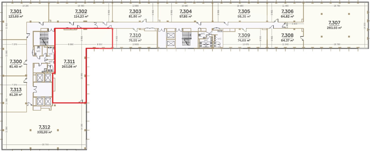 Этот лот состоит из нескольких помещений: 1247 кв. м., 263 кв. м. и 330 кв. м.