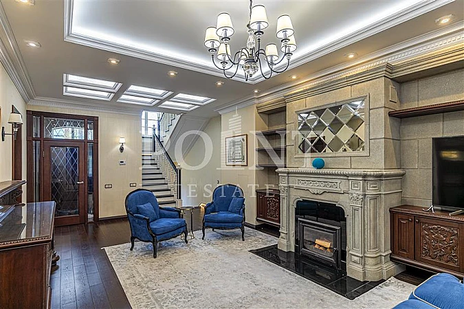 Лот: 108670. Прекрасный таунхаус в четыре уровня площадью 320 кв.м построен на участке 3 сотки в охраняемом коттеджном поселке с развитой инфраструктурой - "Ильинка Лейнхаус". Внутреннее пространство выдержано в элегантной современной классике, отделка и меблировка представляют собой единое дизайнерское решение. Высококлассная дорогая мебель, превосходное техническое оснащение, тщательно подобранные аксессуары. Установлены системы видеонаблюдения и сигнализации. Планировка: 1-й уровень (цоколь): комната отдыха, две кладовые, холл, постирочная, котельная; 2-й уровень: гостиная с камином, кухня, совмещенная с обеденной зоной, гостевой санузел, гардеробная, кладовая, прихожая, терраса; 3-й уровень: две спальни с гардеробными и санузлами, холл, балкон; 4-й уровень: гостиная, две спальни, санузел. На придомовой территории предусмотрена парковка для двух автомобилей. Недалеко находится лес и Москва-река, что обеспечивает свежий воздух. Удобное транспортное сообщение с Новорижским и Рублево-Успенским шоссе.