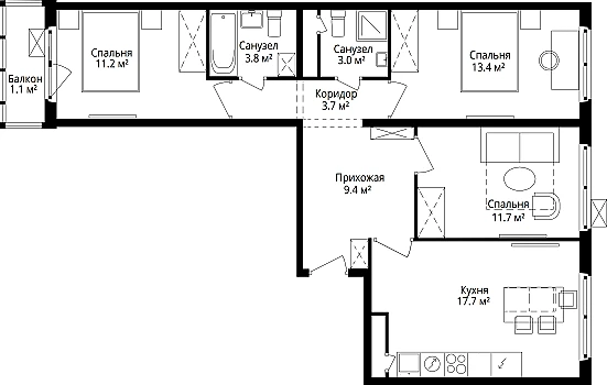 У квартиры хорошая и удобная планировка!