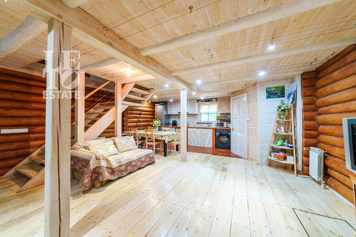 На участке расположен небольшой домик, готовый к круглогодичному проживанию и хозблок с гаражом. Подведены и подключены все коммуникации.