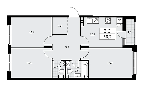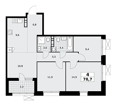 Купить 3к квартиру 77 м² в ЖК Адмирал