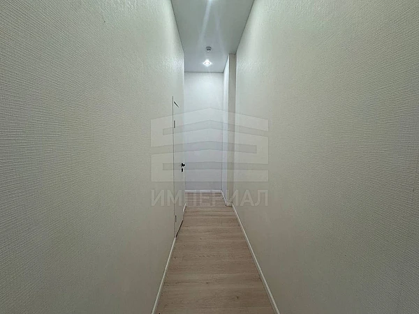 На стенах поклеены обои под покраску, на полу постелен ламинат с плинтусами и откосами. Есть вытяжная вентиляция в санузле и на кухне, выходы хв/гв, место под раковину на кухне. Кроме того, в помещениях уже есть выключатели освещения, розетки для бытовой техники и роутера, а также сделаны закладные для оптоволокна для интернета.