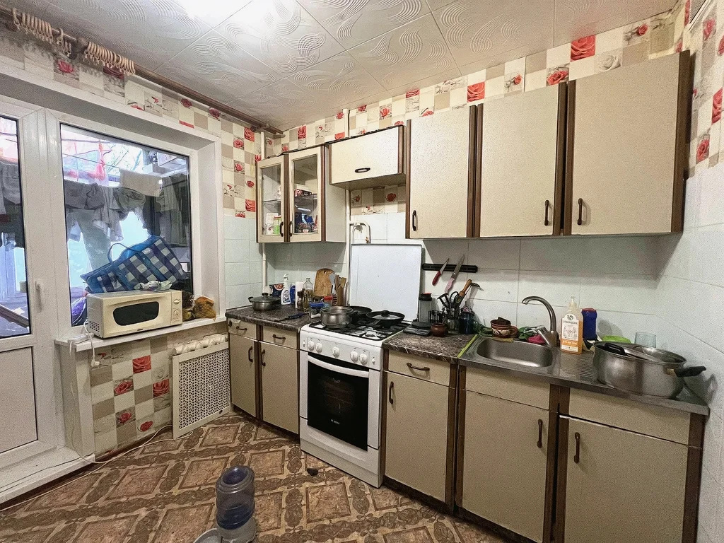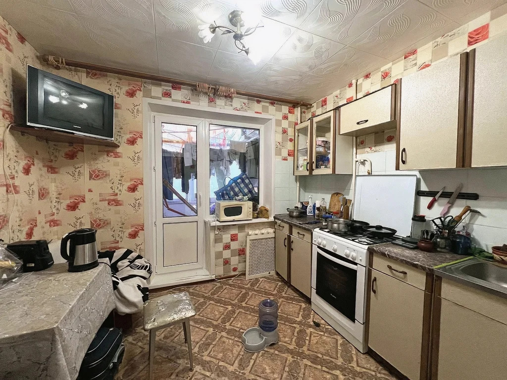 Квартира теплая, уютная общей площадью 39,9м2, просторная кухня 13,5м2, комната 17,6м2. Санузел совмещенный. Окна выходят на Храм.
