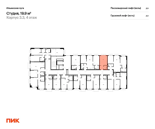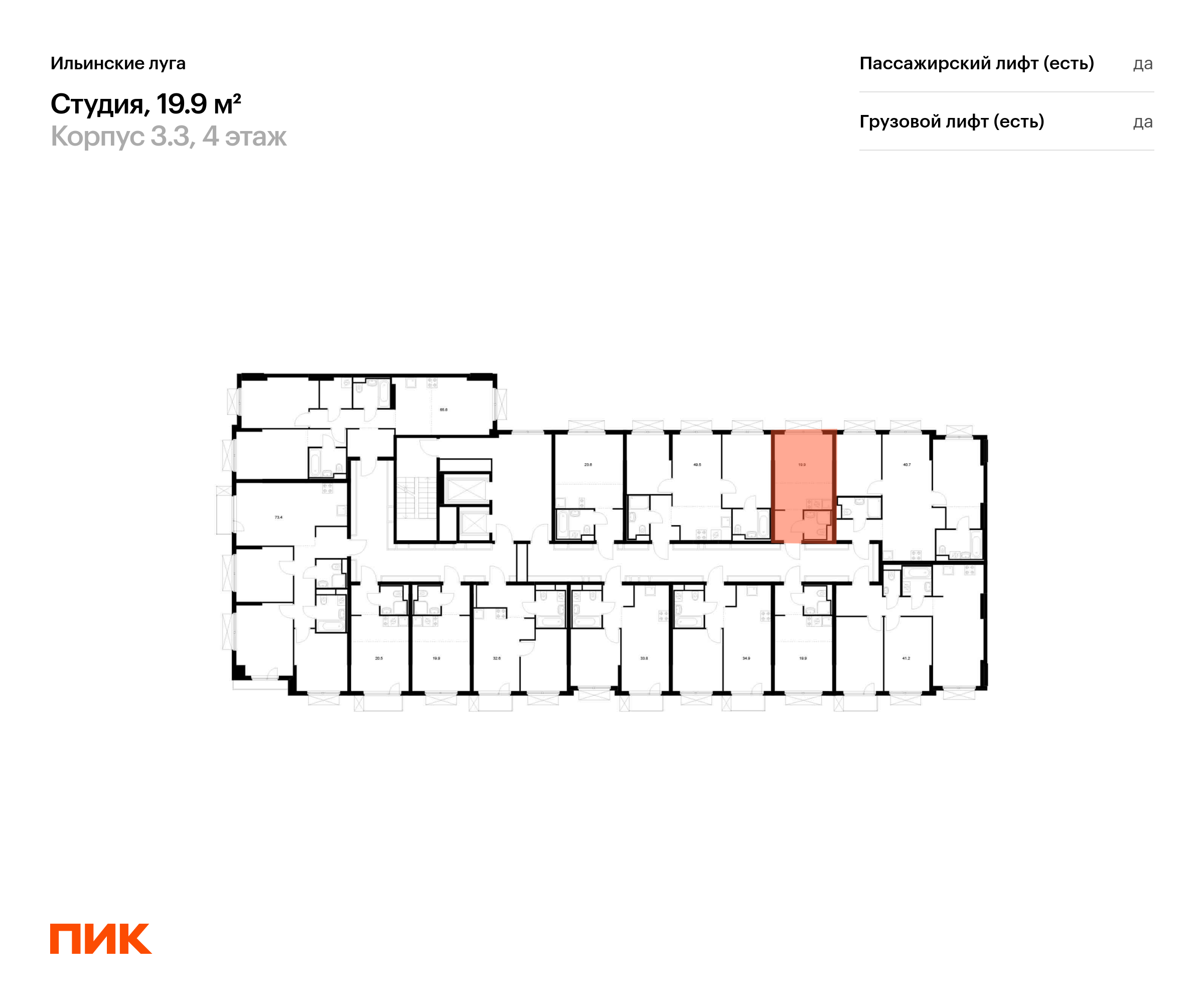 Продаётся квартира-студия площадью 19.90 кв.м на 4 этаже 9 этажного дома (Корпус 3.3, секция 2) проекта ПИК Ильинские луга. Светлый просторный подъезд на уровне земли, функциональная планировка, большие окна, с отделкой.