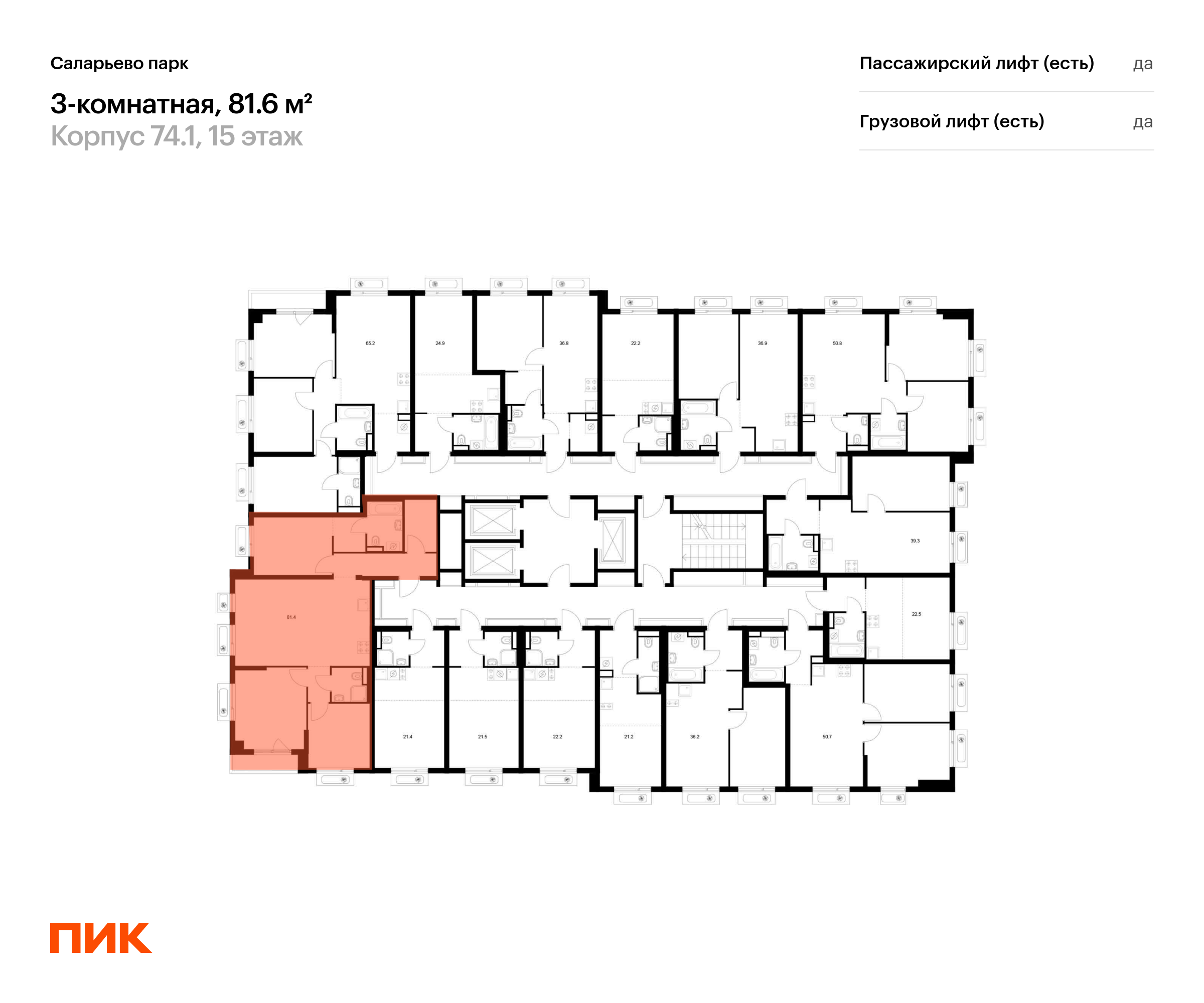 Продаётся 3-комн.квартира площадью 81.60 кв.м на 15 этаже 18 этажного дома (Корпус 74.1, секция 1) проекта ПИК Саларьево парк. Светлый просторный подъезд на уровне земли, функциональная планировка, большие окна, с отделкой.