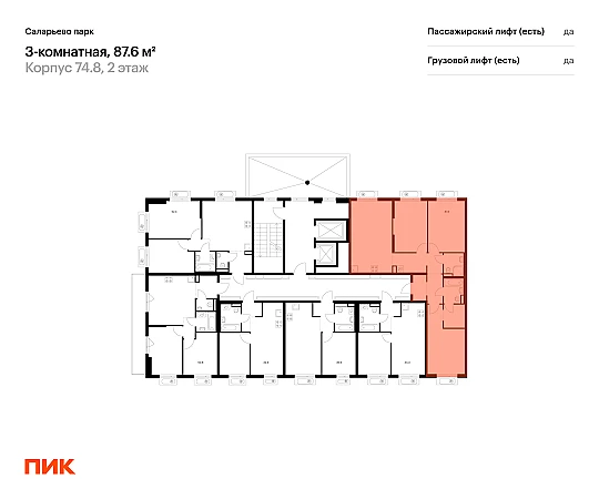 Продаётся 3-комн.квартира площадью 87.60 кв.м на 2 этаже 15 этажного дома (Корпус 74.8, секция 8) проекта ПИК Саларьево парк. Светлый просторный подъезд на уровне земли, функциональная планировка, большие окна, с отделкой.