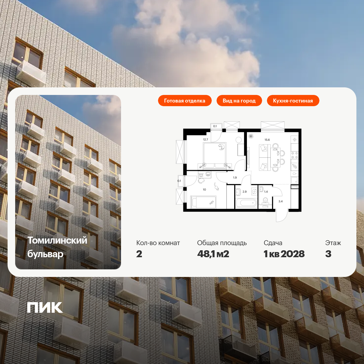 Купить 2к квартиру 48 м² в ЖК Томилинский бульвар