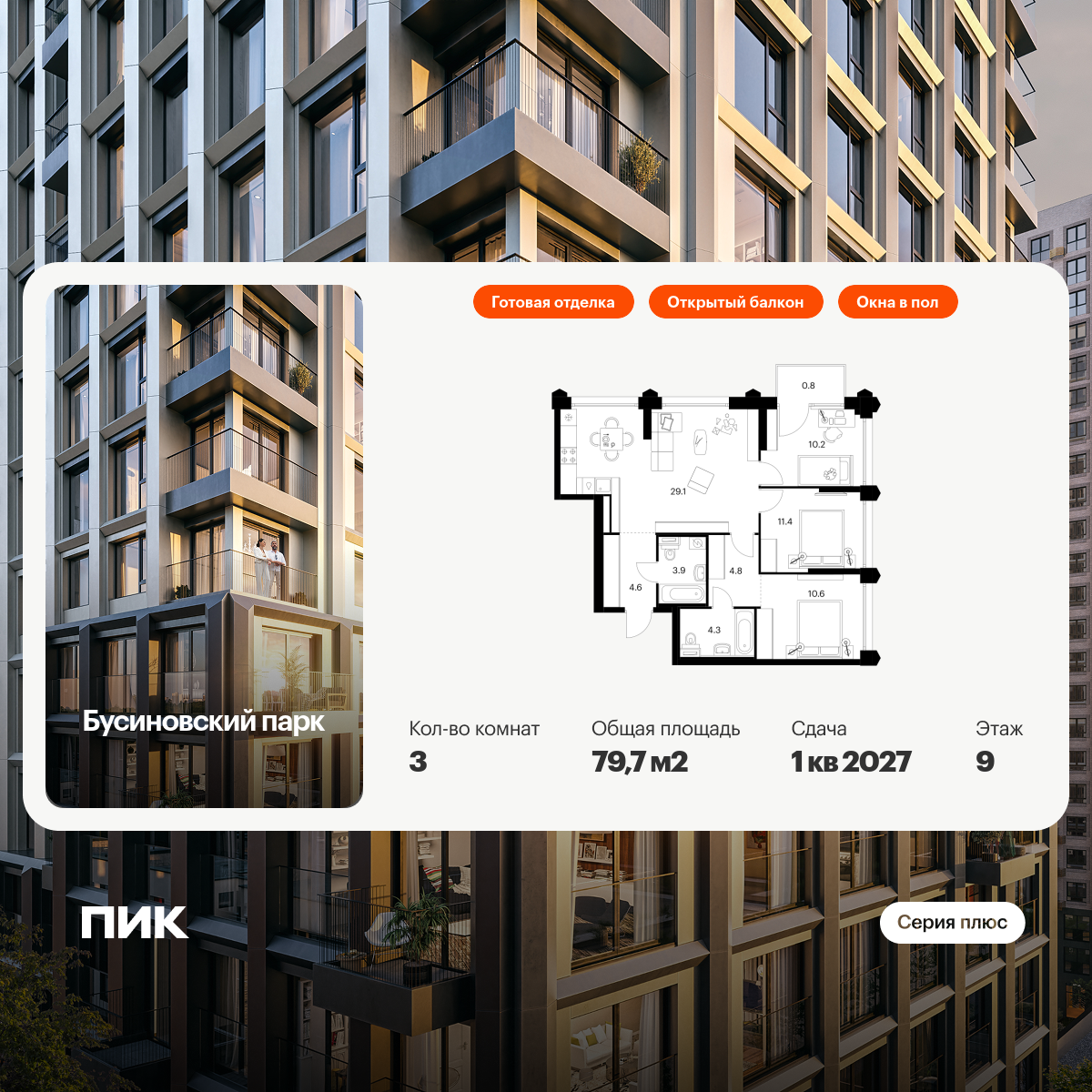 Купить 3к квартиру 79 м² в Бусиновский парк