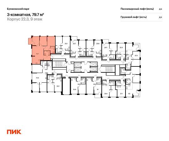 Продаётся 3-комн.квартира площадью 79.70 кв.м на 9 этаже 32 этажного дома (Корпус 22.3, секция 3) проекта ПИК Бусиновский парк. Светлый просторный подъезд на уровне земли, функциональная планировка, большие окна, с отделкой.