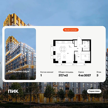 На территории «Середневского леса» можно найти общественное пространство с игровыми площадками, местами для отдыха, пешеходными маршрутами и велопарковкой — для прогулок, отдыха и встреч жителей квартала. Артикул - 1037778