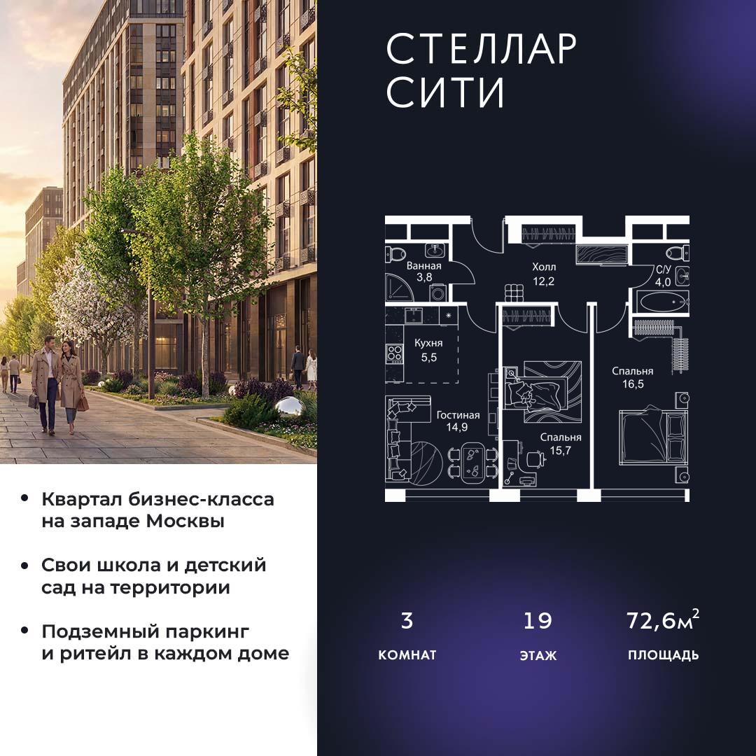 Купить 3к квартиру 72 м² в ЖК Stellar City (Стеллар Сити)